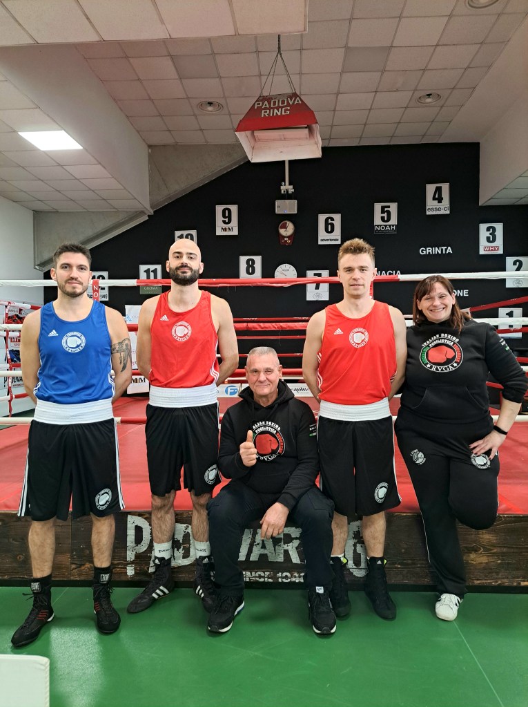 Oggi Evgenii, Francesco e Marco Renoffio, accompagnati dal maestro Pierino Ruga e dal tecnico Angelica Ruga, hanno preso parte alla prima giornata del Torneo regionale amatoriale di Gym Boxe, che si è tenuto presso la palestra della Padova Ring a Padova.
