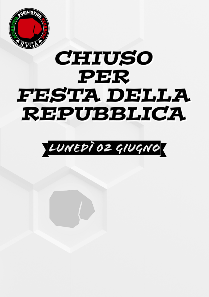 In occasione della Festa della Repubblica, l’Accademia Pugilistica Veronese Ruga resterà chiusa lunedì 02 giugno 2025.